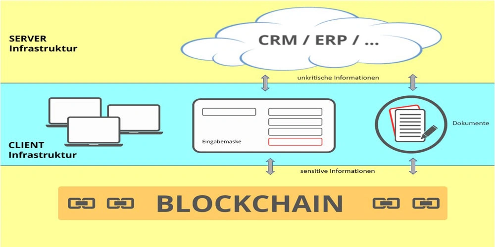 Der Anwendungsbereich der Blockchain-Technologie ist hauptsächlich bekannt durch die Digitalwährungen wie z.B. Bitcoin oder Ether. Über die Digitalwährungen hinaus kann die Blockchain-Technologie auch andere Anwendungsmöglichkeiten bieten. Die Blockchain-Technologie (Hyperledger Fabric) soll genutzt werden, um sensitive Daten sicher zu speichern. Eine Software-Logik soll die Verknüpfung von CRM-System mit der Blockchain übernehmen. Dabei soll neben der Speicherung von Feldwerten aus CRM-Eingabemasken auch die Speicherung von ganzen Dateien (z.B. Word-, Excel-Dokumente) auf der Blockchain erfolgen. Die Blockchain-Peers sollen auf die vorhandenen Clientrechner eines Unternehmensnetzes aufgesetzt werden.