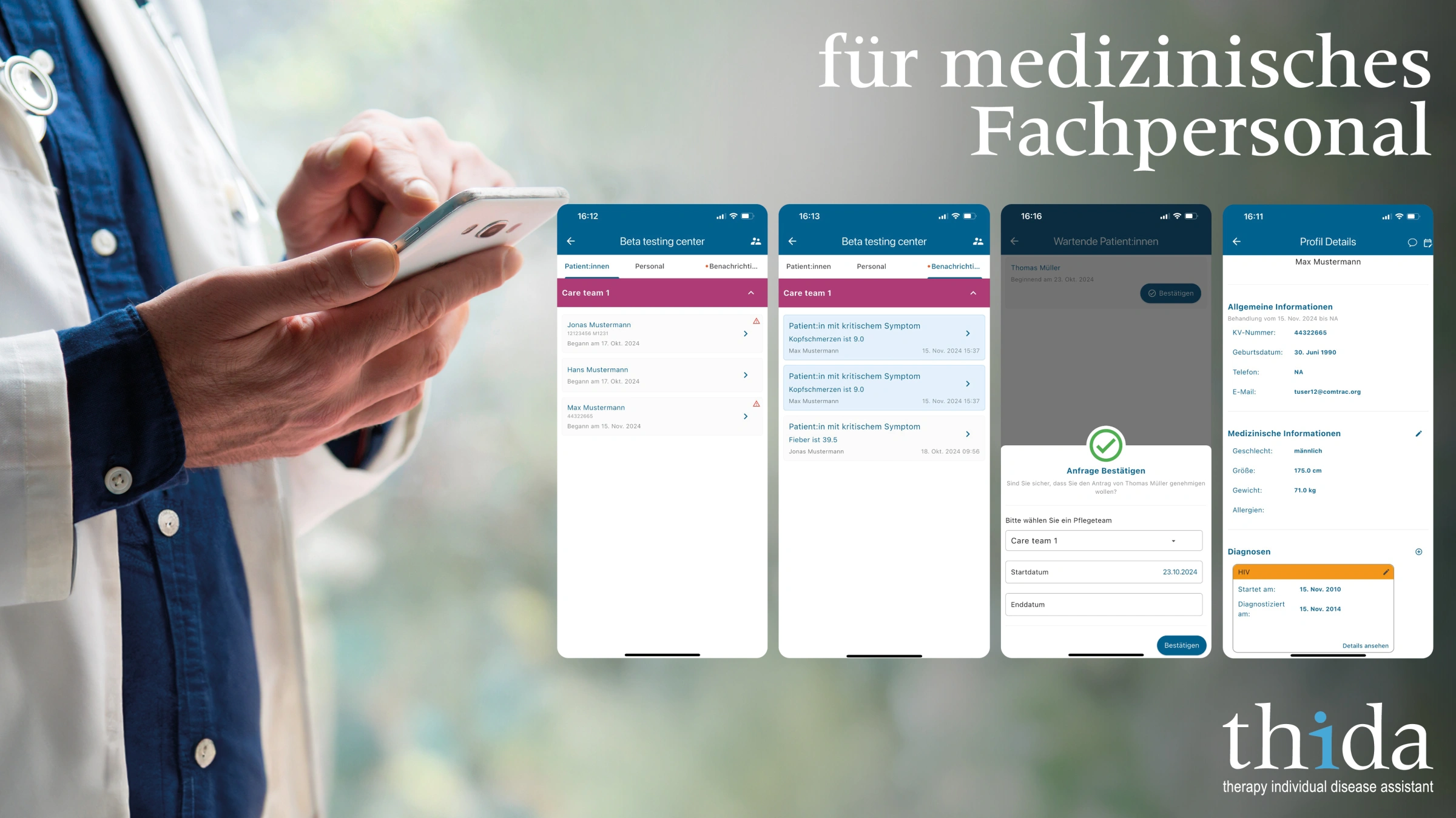 Im Rahmen des COMTRAC-HIV-Projekts wurde die App thida (Therapy Individual Disease Assistant) entwickelt – eine digitale Anwendung zur telemedizinischen Begleitung von HIV-Patientinnen und Patienten. Die App ermöglicht die strukturierte Erfassung von Symptomen, unterstützt die klinische Entscheidungsfindung und fördert die digitale Kommunikation zwischen Patientinnen und Patienten und medizinischem Fachpersonal. thida soll als Medizinprodukt zertifiziert werden und leistet einen Beitrag zur besseren, ortsunabhängigen Versorgung chronisch Erkrankter.