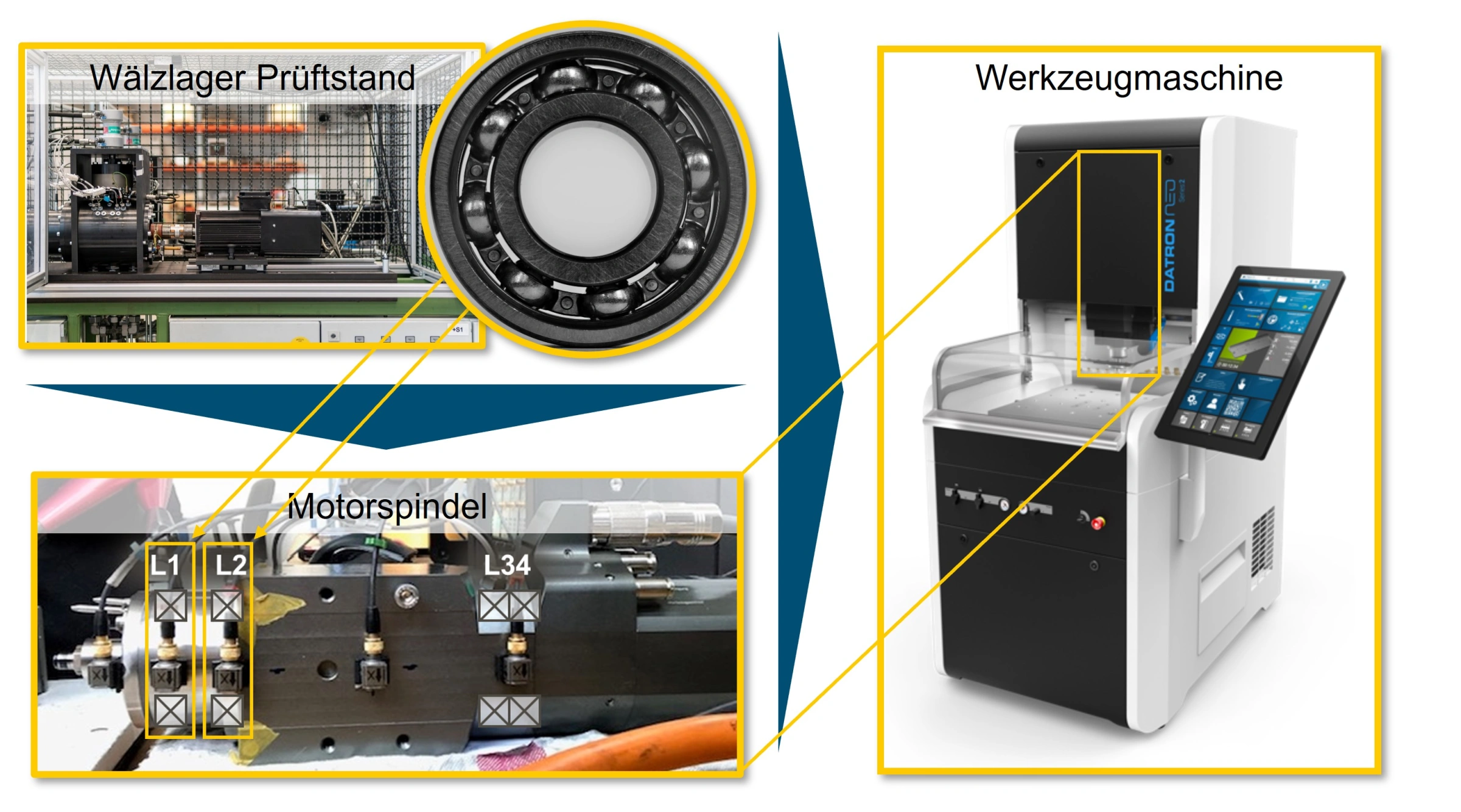 Im Rahmen des Projektes ImpSpin wurde die Motorspindel einer Werkzeugmaschine so modifiziert, dass die elektrischen Eigenschaften der Kugellager während des Betriebs überwacht werden können. In mehreren Versuchsreihen wurde nachgewiesen, dass sich die elektrischen Eigenschaften der Kugellager in Abhängigkeit der Betriebsbedingungen verändern. Dieser Zusammenhang ist nutzbar, um die modifizierte Motorspindel als Sensor zu nutzen. Insbesondere können die beim Bohren auf die Spindel wirkenden Kräfte überwacht werden.