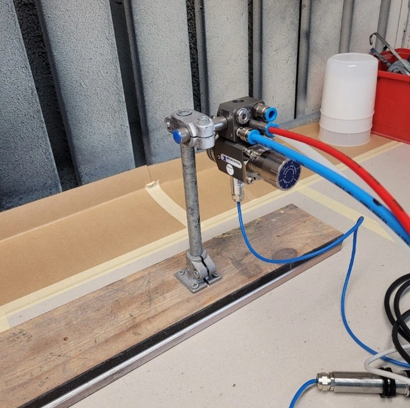 Klassische Spritzgeräte sehen keine Regelkreise für die Reproduzierbarkeit von Oberflächen oder Sprühstrahlen vor. Dies kann in automatisierten Prozessen zu Qualitätsmängeln und Ausschuss führen. Anwender beschränken sich darauf, den Druck für die Spritzluft und den Druck für die Materialförderung zu überwachen. Im Rahmen der Machbarkeitsstudie soll ermittelt werden, ob mit Hilfe von Körper- bzw. Raumschallmessungen Rückschlüsse auf die Qualität des Spritzstrahls gezogen werden können.