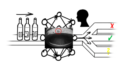 Die meisten Kontrollgeräte bei der Getränkeabfüllung basieren noch auf klassischer Bildanalyse. Mit der zentralen Ausgangsfrage: „Mit welchen Menschzentrierten KI-Methoden können in einem Bild einer befüllten Getränkeflasche aus Glas kleinste Fremdkörper erkannt werden, wobei die Varianz der Flascheneigenschaften extrem groß ist und nur sichtbares Licht verwendet wird?“, sollen neue KI-Techniken zur deutlich verbesserten Fremdköperdetektion genutzt werden.