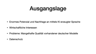 Zum Projektende soll ein erster Rohkorpus für die weitere Validierung der KI-Modelle im Rahmen der Machbarkeitsstudie vorliegen, sowie ein Konzept für die Entwicklung eines vollumfängliches Sprachkorpus für optimierte deutsche Sprache, für die sich an die Machbarkeitsstudie anschließende geplante Produktentwicklung.