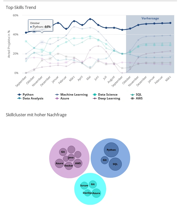 Entwicklung eines personalisierten Analytics-Dashboards für IT-Dienstleister und Auftraggeber zum gezielten Überbrücken von Fachkräftelücken.